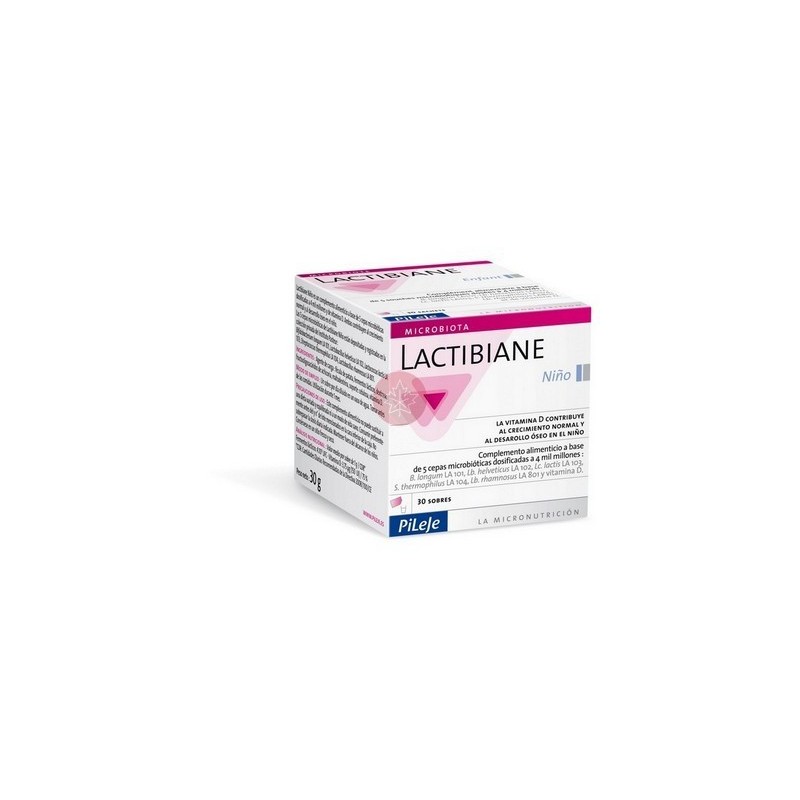 Lactibiane Niño es un complemento alimentario destinado a aportar a los niños 5 cepas microbióticas específicas, dosificadas a 4000 millones por sobre, así como vitamina D3