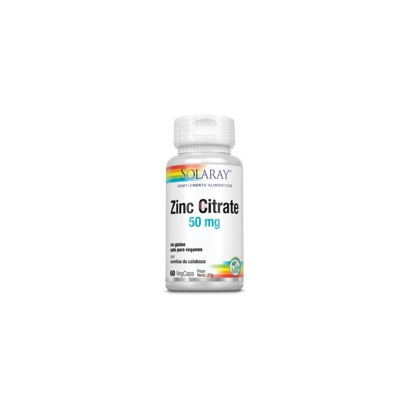 SOLARAY ZINC CITRATE 50 MG. - 60 CAP. VEGETALES SIN GLUTEN